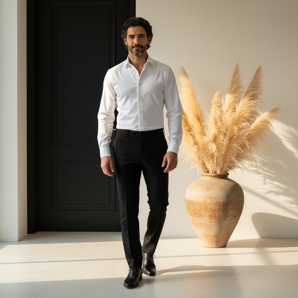 Biela elastická bambusová pánska košeľa pre všetkých mužov, ktorí preferujú svetlé odtiene , jednoduchosť a pohodlnosť. Bambusové vlákno je priedušné a v lete chladivé. Elastan v košeli zaistí vyformovanie postavy. Minimalistický kúsok vhodný na každodenné nosenie aj na rôzne spoločenské príležitosti či už formálneho alebo neformálneho charakteru. Dostupná v strihu Slim. Zloženie košele: 51% bambus, 44 % polyester a 5 % elastan .