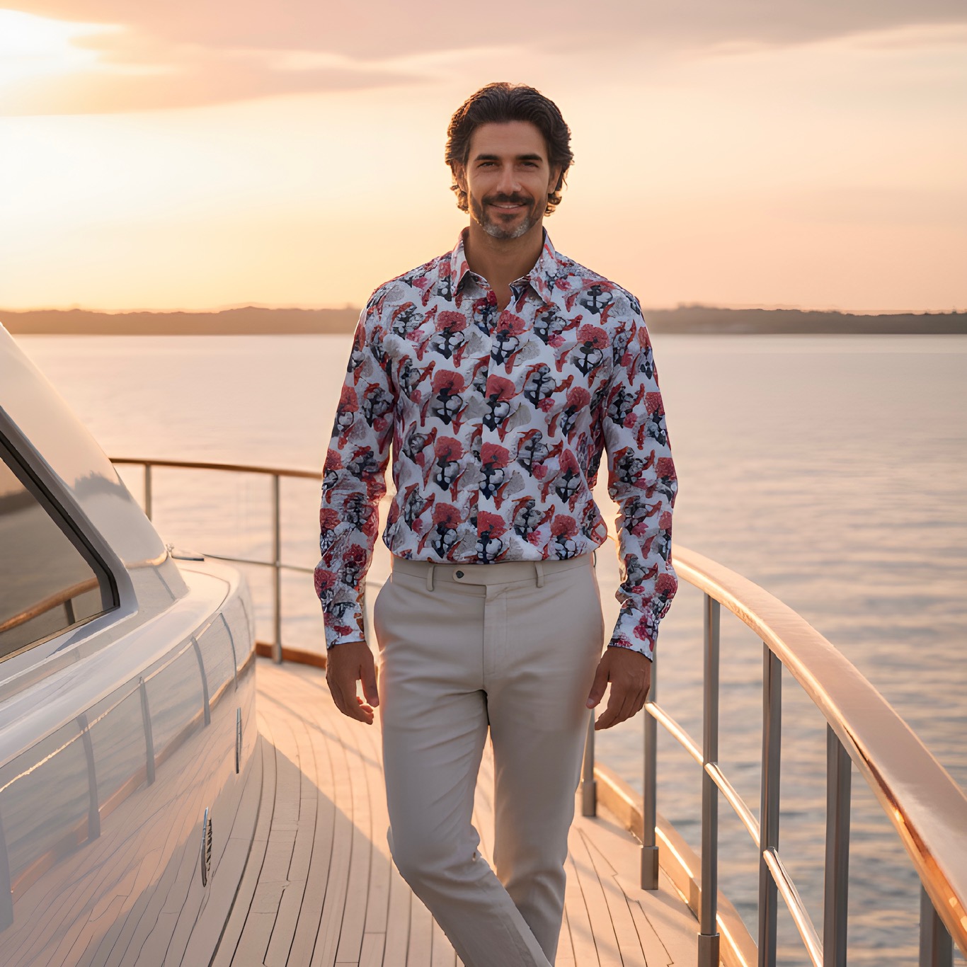 Pánska košeľa značky RIKKA PERTTI s výrazným farebným vzorom patrí medzi moderné a unikátne kúsky, ktoré sa perfektne hodia nielen na letnú párty, ale aj k business casual štýlu. Košeľa je dokonca vhodná aj na svadbu pre svadobného hosťa. Vzor perfektne oživí zvyšok outfitu a navyše pohodlný kúsok zaručuje maximálny komfort pri nosení.