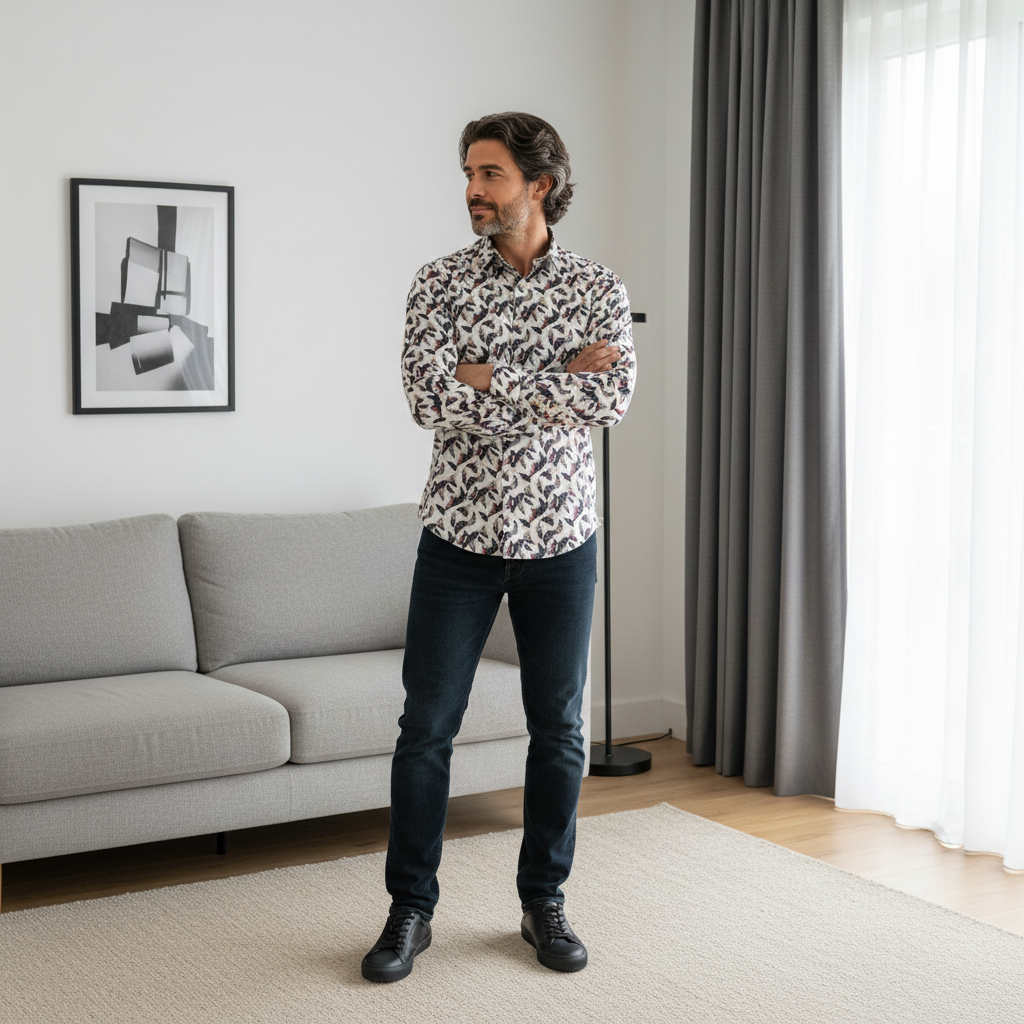 Pánska košeľa značky RIKKA PERTTI s výrazným farebným vzorom patrí medzi moderné a unikátne kúsky, ktoré sa perfektne hodia nielen na letnú párty, ale aj k business casual štýlu. Košeľa je dokonca vhodná aj na svadbu pre svadobného hosťa. Vzor perfektne oživí zvyšok outfitu a navyše pohodlný kúsok zaručuje maximálny komfort pri nosení.